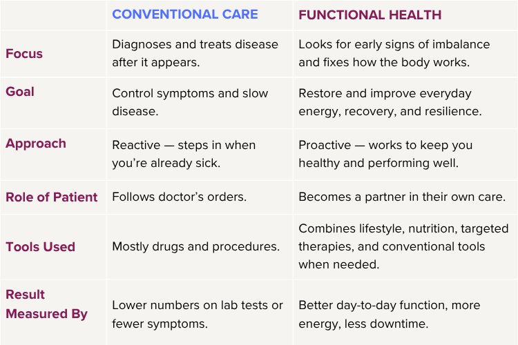Functional health looks at how well your body works — so problems can be caught early and health can be restored, not just managed.
